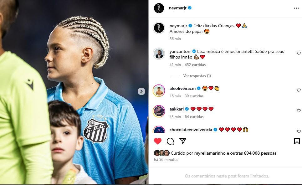 Na noite deste domingo (12), Neymar emocionou seus seguidores ao publicar uma homenagem aos filhos ao som de “Pingo de Gente”, canção do cantor Yan. A escolha da música, marcada por versos sobre o amor paternal, reforça a grande repercussão da faixa lançada na última quinta-feira acompanhada de clipe, em homenagem ao Dia das Crianças.