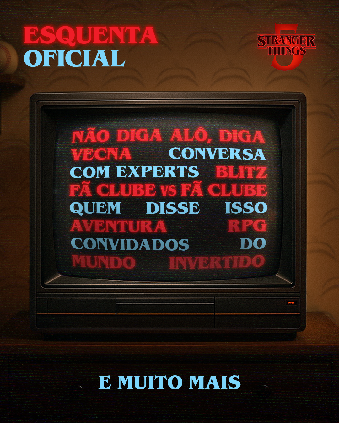 Não se perca no Mundo Invertido: vem aí a grande celebração. No dia 26 de novembro, às 17h, sintonize no YouTube da Netflix Brasil e embarque no aquecimento para a quinta e última temporada de Stranger Things.